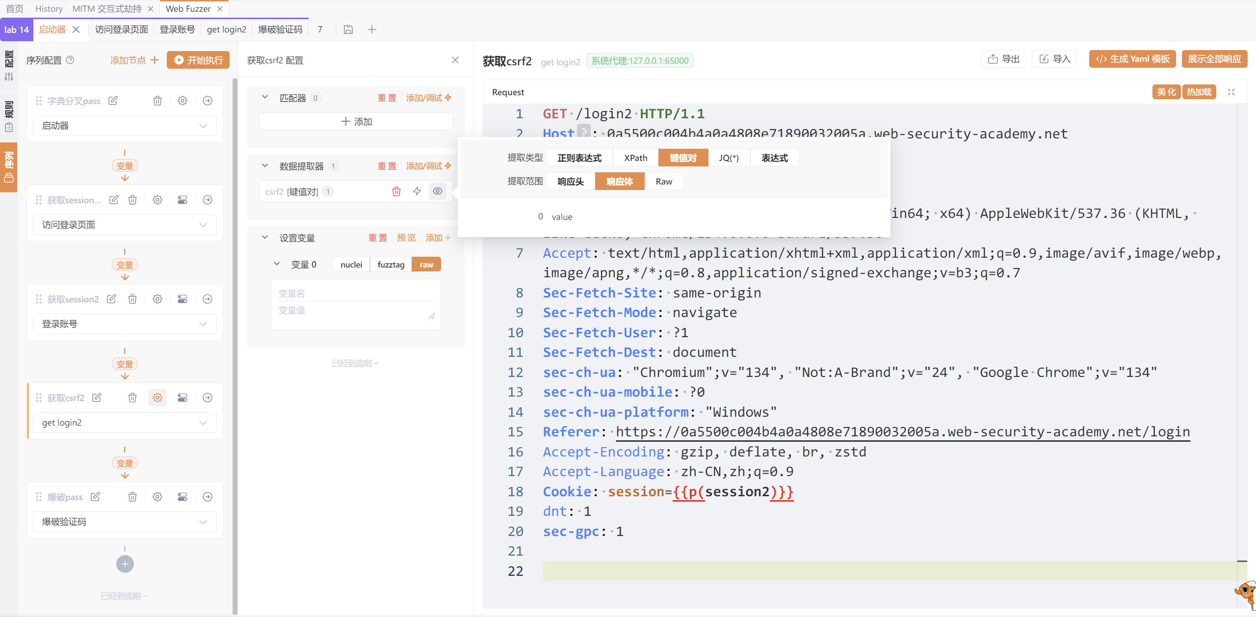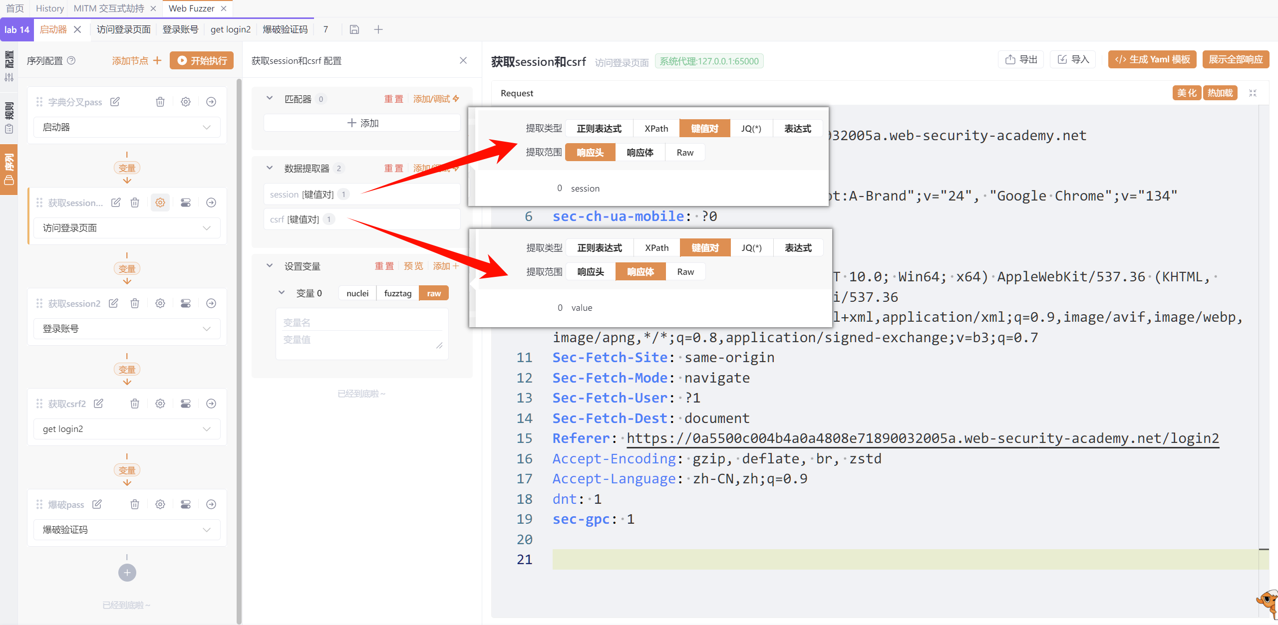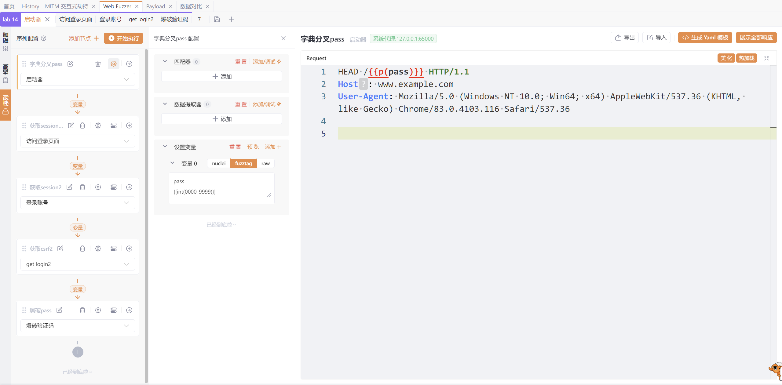 这里贴一下序列流程和具体请求包(请求包已删除无用字段),注意变量设置和提取器规则。并且把所有靶场链接替换成自己的