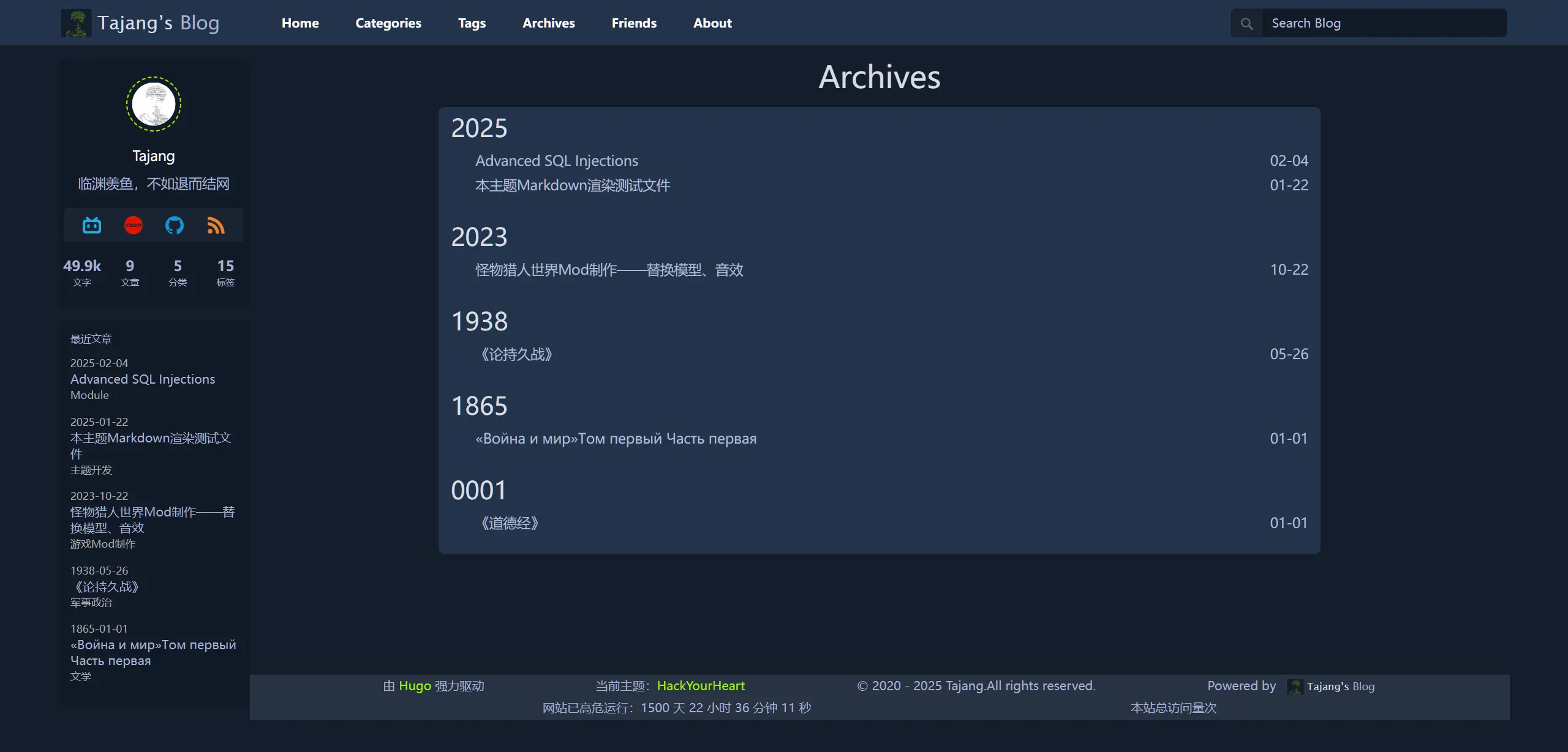 写这个主题是因为我在Hugo的主题仓库里没有找到喜欢的主题。
