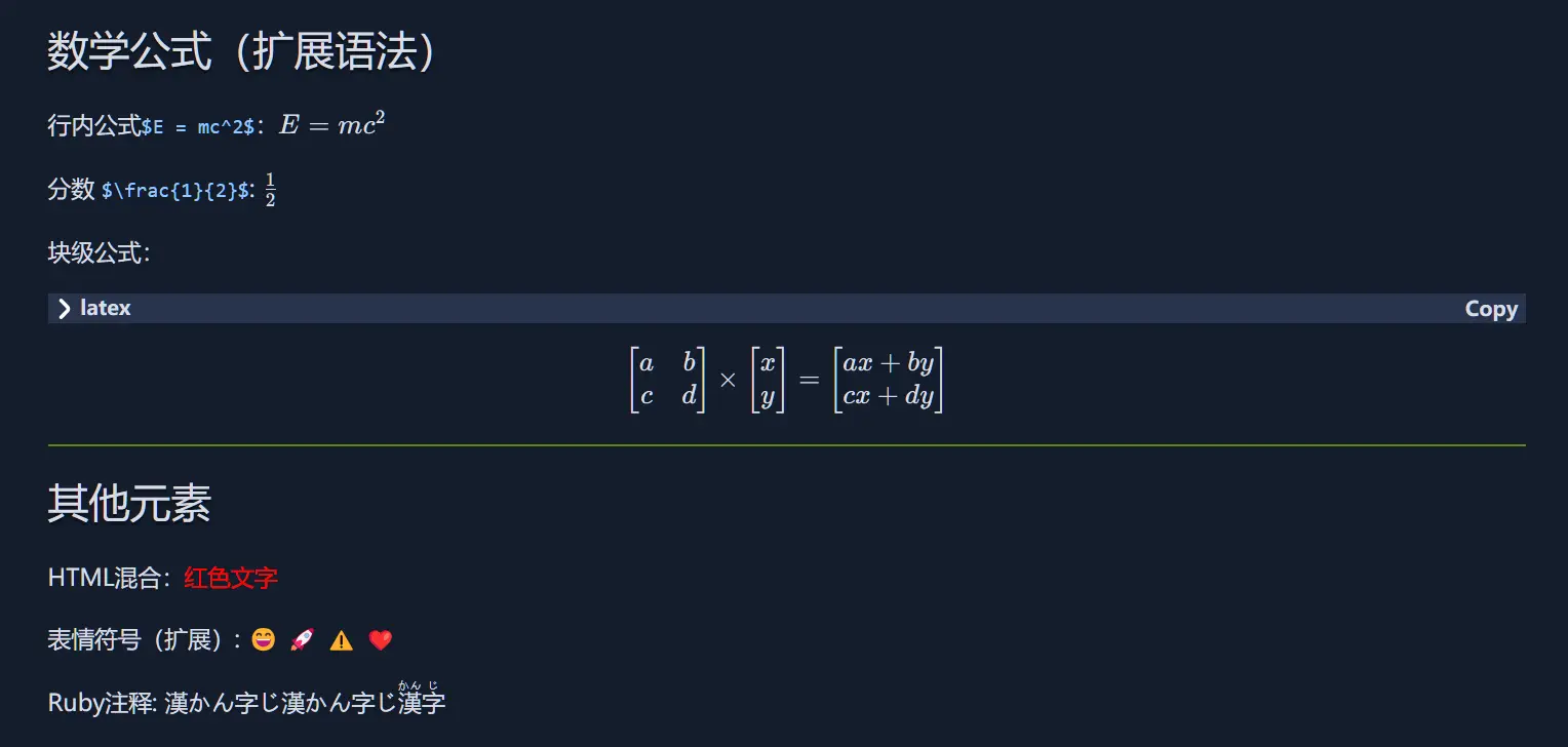 尤其是代码块的表格显示,行号冲突,锚点冲突,又没有复制按钮。其中魔改了一个js,其中许多搞笑的bug,不过都解决了。