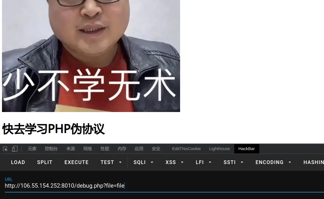 发现url是传入文件,我们传入index.php,会直接显示渲染过的index.php页面,所以使用php伪协议用base64读取index.php源码