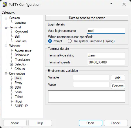 Connection:Data里Auto-login username里填写root