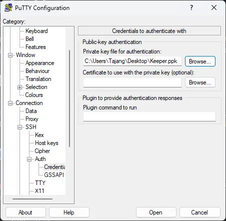 Connection:SSH:Auth:Credentials里Private key file for authentication加载私钥,就是那个ppk文件