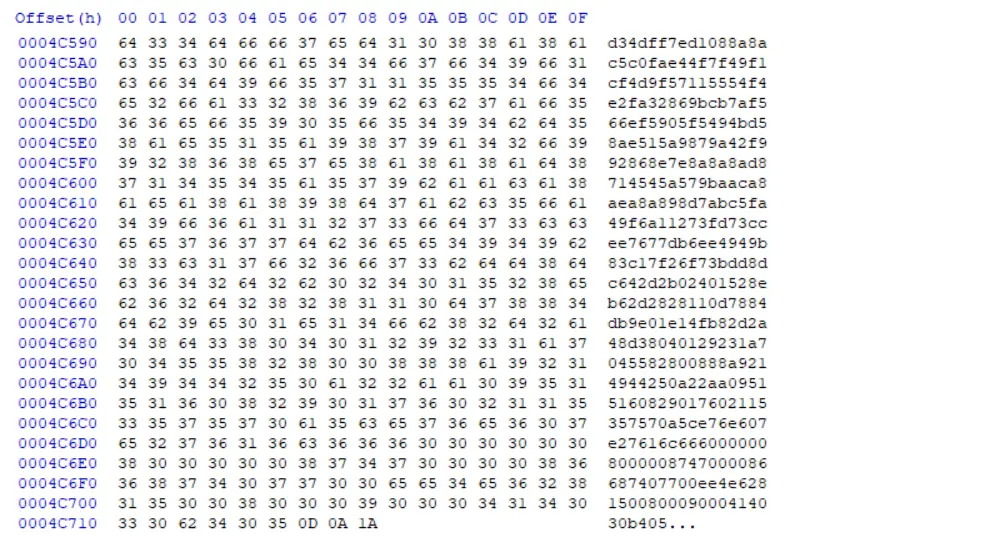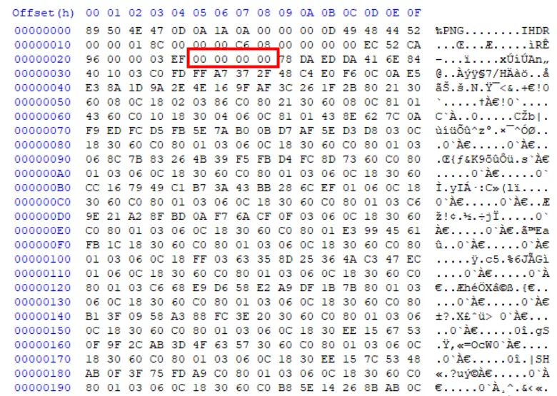 解后里面是一张无法打开的png图片,十六进制打开。非常明显的IDAT缺失