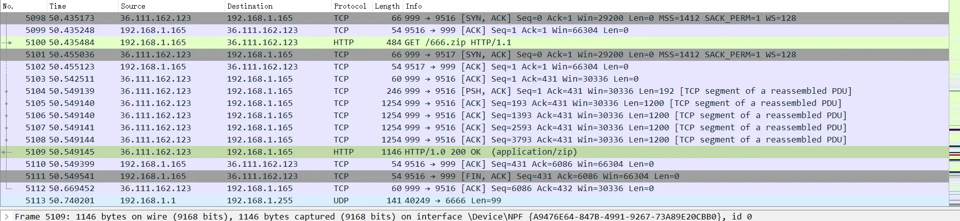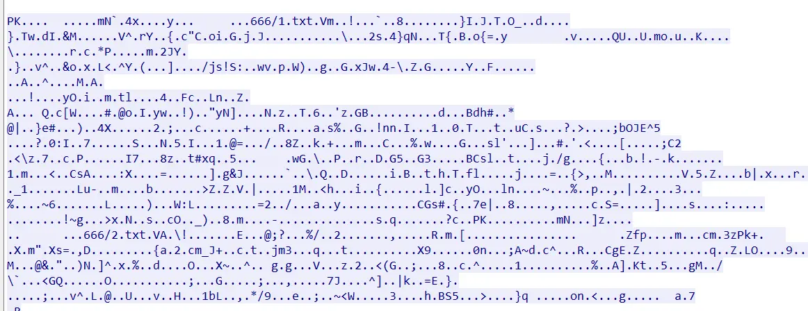 附件解压是个pcapng文件,用wireshark打开,搜索相关文件,如zip、doc、txt、rar等,这里搜索到666.zip