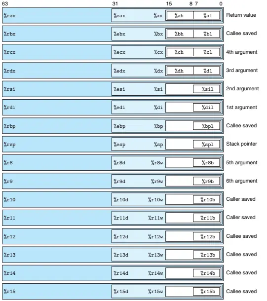 - 前6个参数依次存放于 rdi、rsi、rdx、rcx、r8、r9 寄存器中