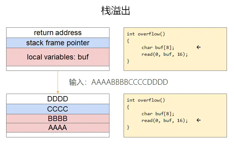 本质是向定长的缓冲区中写入了超长的数据,造成超出的数据覆写了合法内存区域