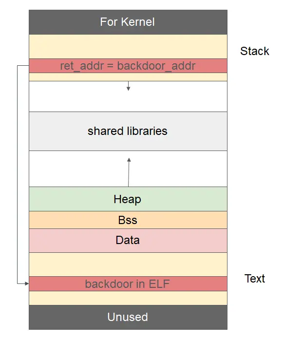 - 篡改栈帧上的返回地址为程序中已有的后门函数