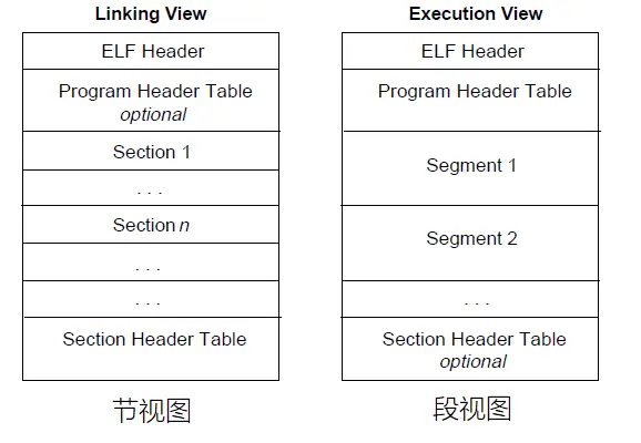 - 节视图用于ELF文件 编译链接时 与 在磁盘上存储时 的文件结构的组织