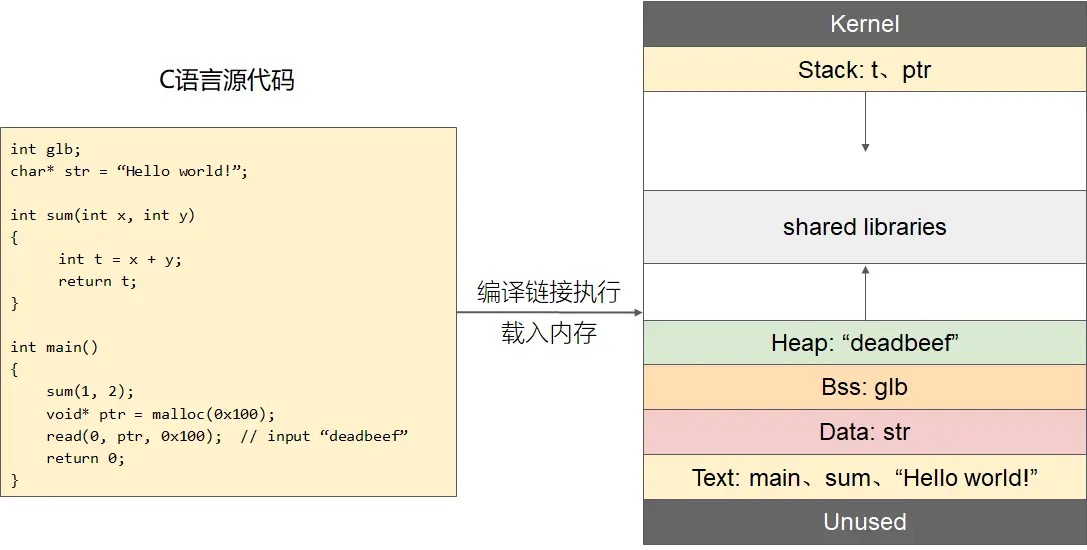 - 虚拟内存 mmap 段中的动态链接库仅在物理内存中装载一份