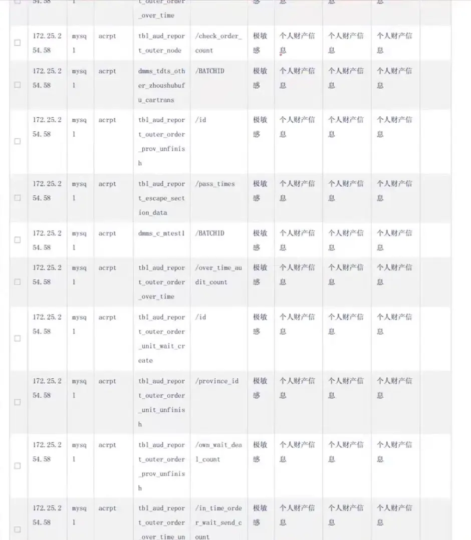 因为那个监管部门要求我们报送企业的一个数据量,这块就是扫的过程中把数据量搞出来,然后这个其实就是我们依托于第一张表,就是有一个感性的认知,我有哪些字段,然后再结合合规的一个要求
