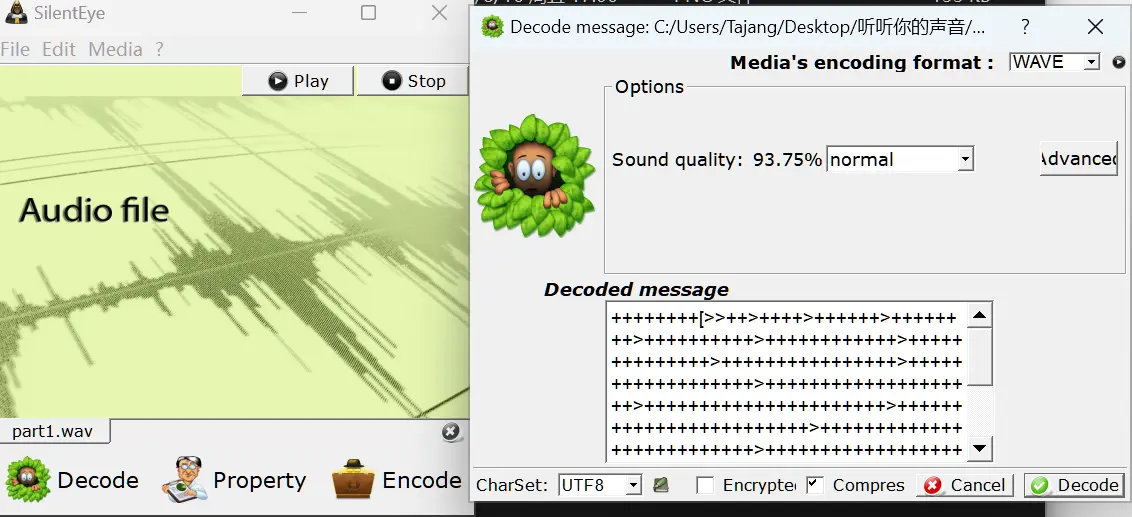 使用MP3Stego工具通过获得的密码解密part2.mp3文件