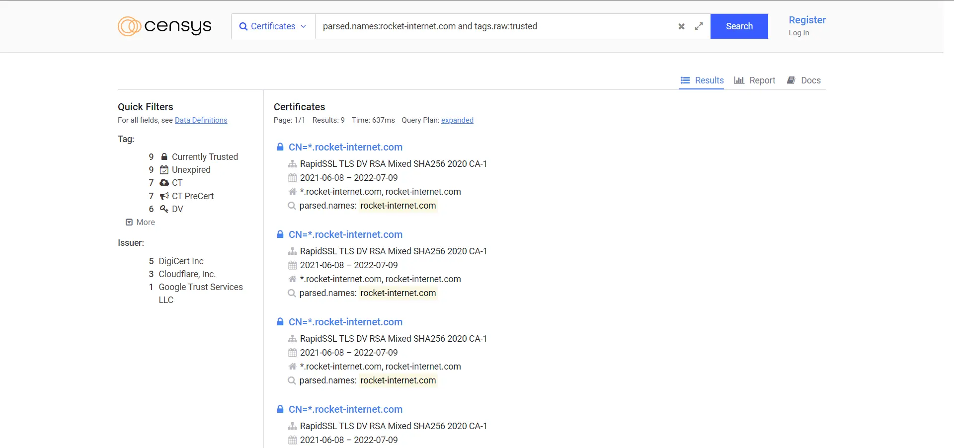 组合的搜索参数是:parsed.names:xyz123boot.com 和 tags.raw:trusted
