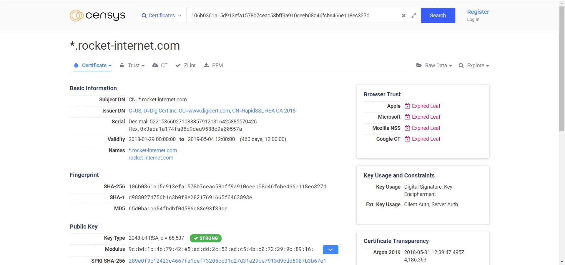 Censys 将向您显示在扫描中找到的符合上述搜索条件的所有标准证书。