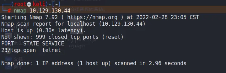 在扫描过程中,我们在端口 23/tcp 上识别出什么服务?
